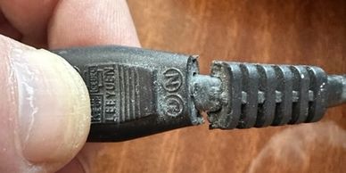 Plug flex not secured and inner cables showing.