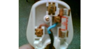 An incorrectly wired plug with no earth.