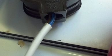 Cable broken, found taped to hide the fault. As you can see this is an accident waiting to happen.