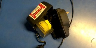 Transformer plugged in severed by a door.