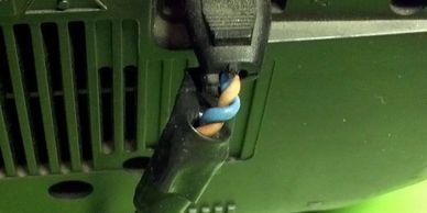 Exposed inner cables on an amp.